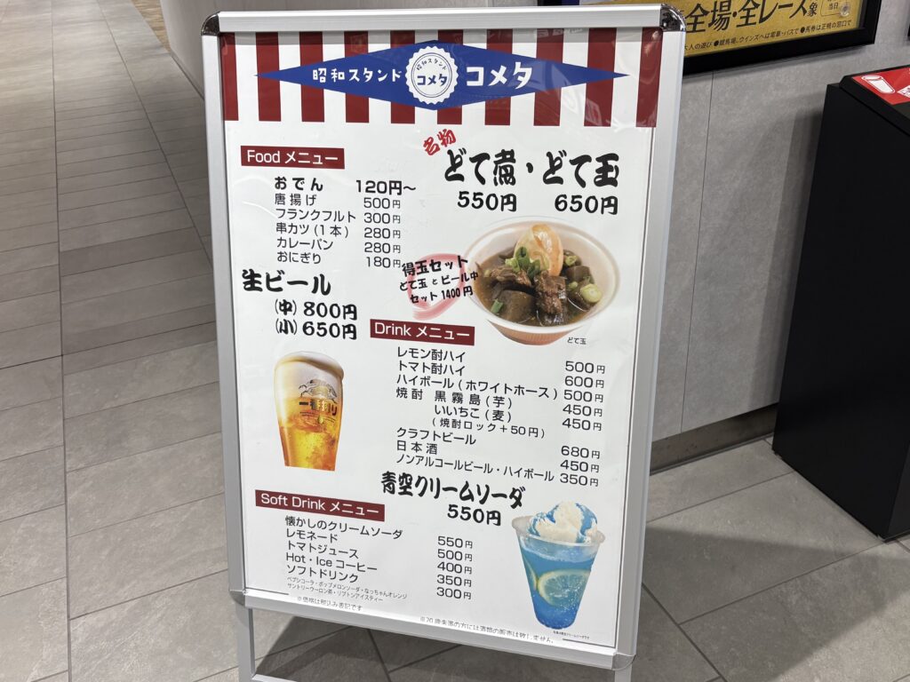 ゴールサイド4階の指定席エリア内にある。京都競馬場ビールが人気。競馬観戦中に、ちょい飲みするのに最適だ。※場所:ゴールサイド4F