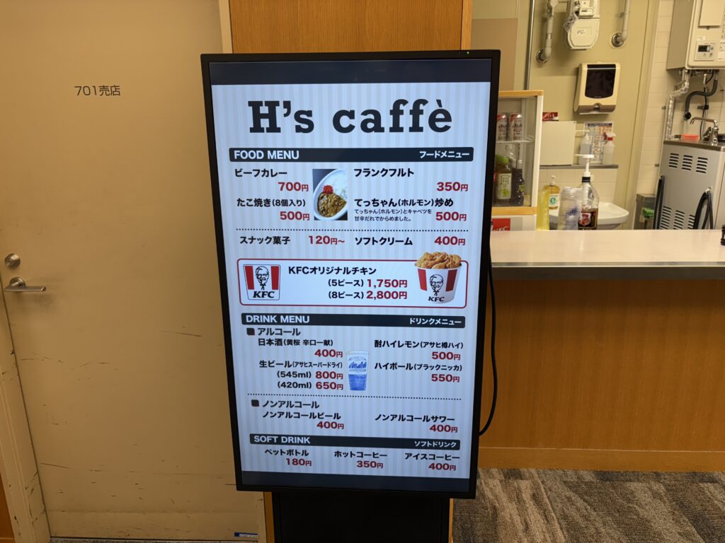 観客の少ないステーションサイド7Fにあり、いつも静か。並ばずに飲み物や軽食を直ぐに購入できる。