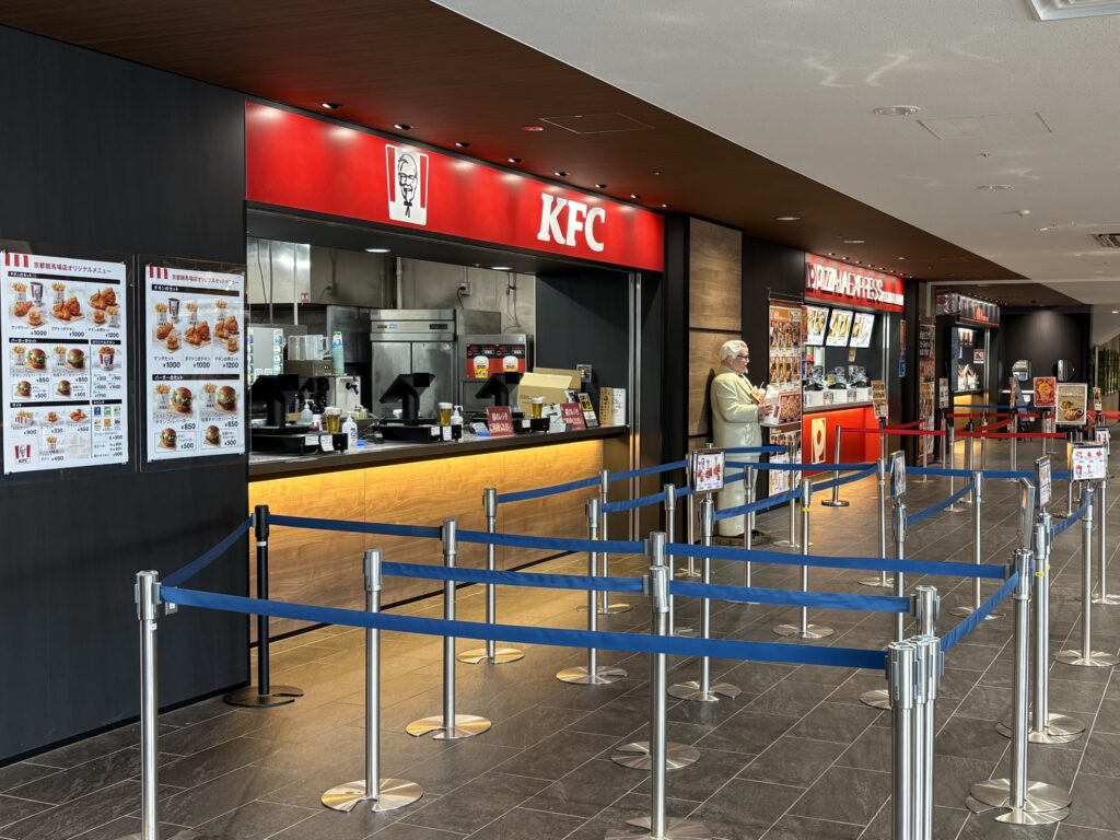 ファストフードチェーン店のKFC(ケンタッキーフライドチキン)。KFC特性のフライドチキンを主力商品としている。街中にある店舗に比べてメニューは少ないが、価格がほぼ同額なのは嬉しい。※場所:1Fフードコート